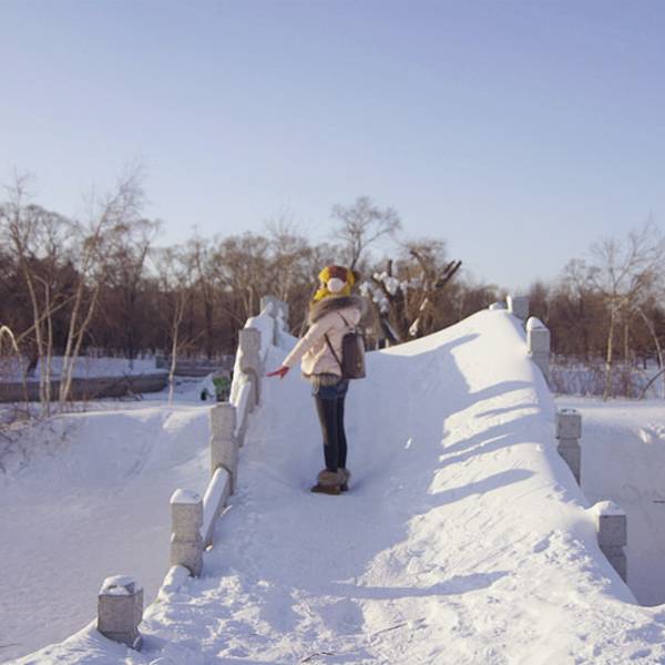2.比较省时省钱的方式就是在横跨松花江过对岸的太阳岛,步行时间约15分钟,但是不得不说冬天在松花江上行走,真的特别的冷