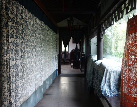 里面建的比较仿古,地方不大,但都还是比较有特色的南通蓝印花布博物馆里面有文字图片展示,印象最深的就是那句“青取之于蓝,而青于蓝”,花色不同,用途不同,有的做沙发布,有的可以用来做围巾服饰。里面建的比较仿古,地方不大,但都还是比较有特色的。