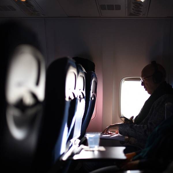 一个多小时的飞行,什么吃喝也没给。拖运行李也是自助,自己将行李条贴到箱子上,用那个东西一扫,行李就走