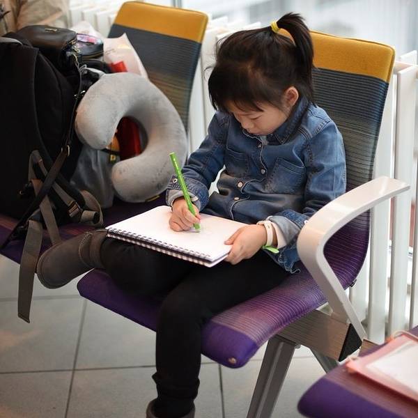 发现北欧地区不管多小的机场都会有儿童设施还有书架,还有轮椅必不可少,所以行动有障碍的人士出行也不少,以人为本真的是潜移默化得体现出来。带孩子出行必备神器——画画本