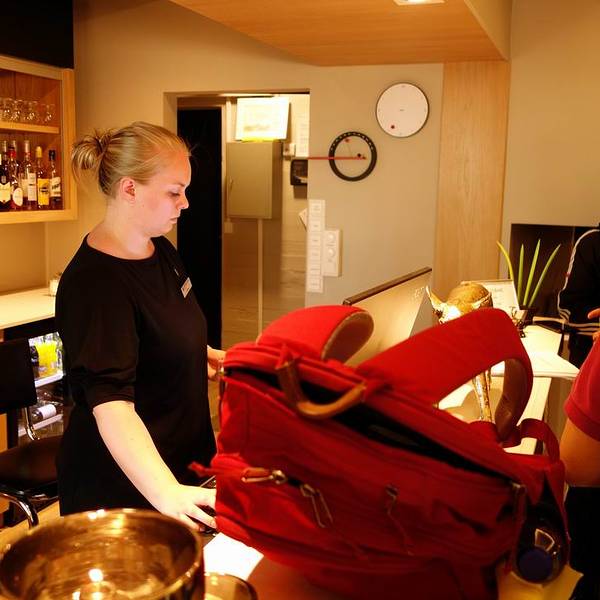 睡了3个小时,4:00多出来看看情况,一会就发现有个德国人在自助机上值机,正是我们这个航班,还是关心行李问题,,如果不含行李我们就在机场试着网上值机。自助机有3个选项:护照、条形码和PNR码,德国人手里拿着的是有条形码的单子,顺利打印出登机牌和行李条。我们的PNR码还是不行,那就用最保险的扫描护照的办法,可以了,也出了登机牌和行李条,原来这个航班也是含行李的,之前又是瞎担心,全含行李。但后来到了斯德哥尔摩,碰到一位与我们同一航班的上海姐姐,她说自己从卑尔根到斯德哥尔摩的机票才80多欧,可在机场却花100欧买了个行李票,真是搞不懂。