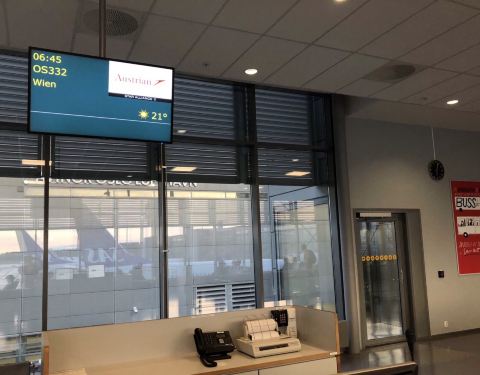 踏上奥地利航班,告别奥斯陆,披着朝霞飞往音乐之都—维也纳,安检完毕,坐在前往维也纳的登机口候机了