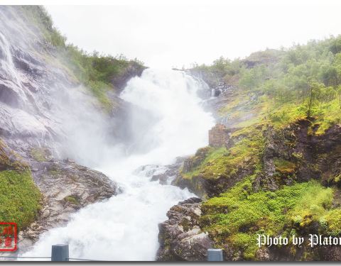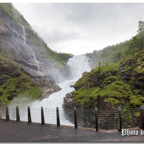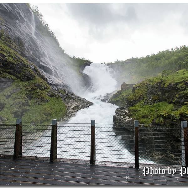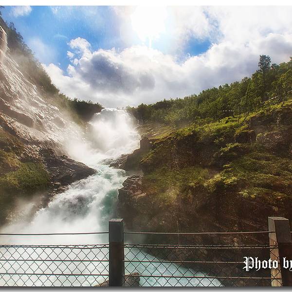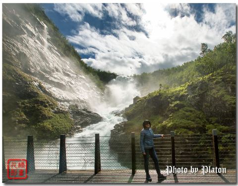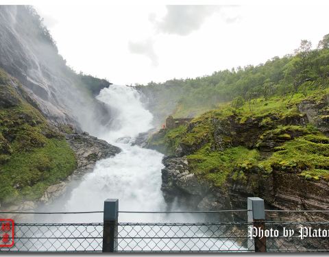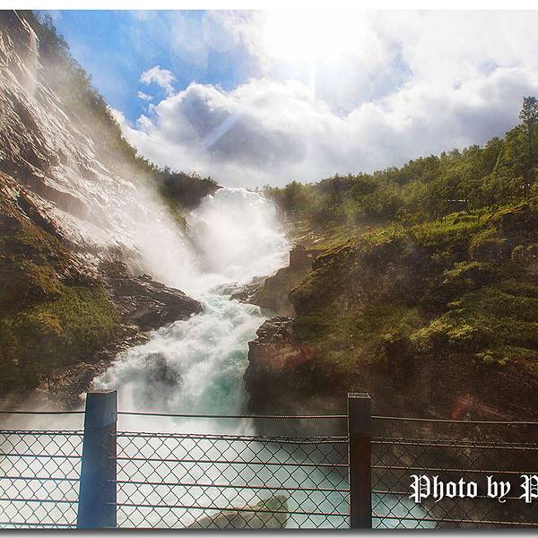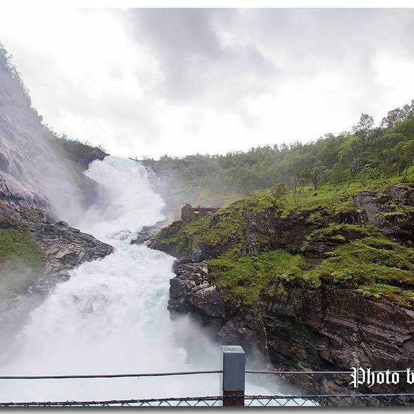 这个“尤斯瀑布(kjosfossen)”是乘坐观光火车游览过程中的精华部分尤斯瀑布(kjosfossen) 往返于弗洛姆与米达尔之间的观光火车,在行驶到“kjosfossen”车站时会停车两次(来回各停一次),让游客欣赏美丽、壮观的“尤斯瀑布(kjosfossen)” 尤斯瀑布(kjosfossen),海拔669米...尤斯瀑布(kjosfossen) 往返于弗洛姆与米达尔之间的观光火车,在行驶到“kjosfossen”车站时会停车两次(来回各停一次),让游客欣赏美丽、壮观的“尤斯瀑布(kjosfossen)” 尤斯瀑布(kjosfossen),海拔669米,距离米达尔4.4公里,距离弗拉姆15.6公里,火车在巴克里隧道出口处停了下来,就是壮观的尤斯大瀑布。瑞农戈湖的湖水,经过一处引水道,再流经发电厂后,在这里形成一个大瀑布。细雨濛濛中,我们走下走,欣赏这高度落差达到93米的瀑布,水量丰沛倾泄而下,水的冲击声隆隆不絶于耳,令人震憾。 当播音器里传来当地民谣时,在瀑布右侧一排石墙的位置,会有“山中精灵”(仙女)出现,伴随着悠扬的当地民谣翩翩起舞。 这个“尤斯瀑布(kjosfossen)”是乘坐观光火车游览过程中的精华部分。 想要拍摄瀑布壮观场景的游客,须随时擦去镜头上,飞溅的水滴。 展开