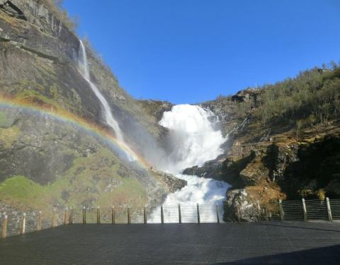 肖斯瀑布是弗洛姆铁路(Flåmsbana)途经的一处瀑布,这座瀑布只有乘坐火车才能到达,瀑布前有观景台