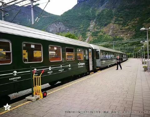 这个“尤斯瀑布(kjosfossen)”是乘坐观光火车游览过程中的精华部分往返于弗洛姆与米达尔之间的观光火车,在行驶到“kjosfossen”车站时会停车两次(来回各停一次),让游客欣赏美丽、壮观的“尤斯瀑布(kjosfossen)”
