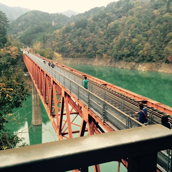 大井川铁道全区间中最具特色、也是日本铁道中富有盛名、被称为日本第一不可思议的车站的奥大井湖上站。这个车站位于跨越接岨湖的レンボーブリッジ(彩虹大桥)的正中央,虽然与湖边突起的半岛接壤,但这块土地没有任何其他的交通方式可以到达。湖中央的车站因为地理位置的特殊,成为了恋人相誓厮守的圣地——车站设置了Happy-Happy Bell(幸福之钟),而铁栏上则可以挂同心锁。站在这个湖中的寂孤岛,俯瞰青绿色的湖水和四周连绵的群山,洗涤身心的体验一定能给你留下深刻的印象。