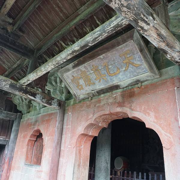 玄帝殿大殿正面的五开间,中间三间大,两边两间小。正中的三开间都悬挂着横匾。正中的横匾写着:“曲成万物”、左边的横匾写着“道通天地”、右边的横匾写着:“北极枢庭”。穿过玄帝殿出玄帝殿后门,视野豁然开朗,终于来到了南岩宫最惊心动魄地方。