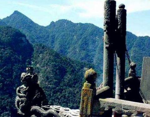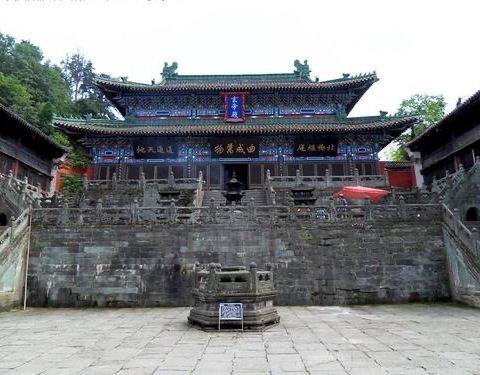 南岩宫始建于元代至元二十二年(公元1285年),明代永乐十年(公元1412年)扩建。整个南岩宫镶嵌于悬崖峭壁上,依山而建,就险峻程度和恒山的悬空寺可以相提并论。乘坐景区内的观光车,从紫霄宫到终点站乌鸦岭后,再步行经过南天门,就可以到达南岩宫。南岩宫周边树木苍翠,现存主要建筑有天乙真庆宫(石殿)、大殿、两仪殿、南天门等,还有飞升崖、龙头香等武当山景点。传说中,这里也是真武大帝得道飞升的地方。 当你从陡峭曲折的古道经过南天门,来到南岩宫大殿(玄帝殿)时,会觉眼前豁然开朗,脚下是深不可测的黑虎涧,向前方望去,武当山的主峰——天柱峰在众山环拥中,满目青山,云雾缭绕,会产生飘飘欲仙的感觉。 南岩宫内的天乙真庆宫,始建于元代,是一座“石殿”,建筑中所有的构件,如:梁柱、门窗、匾额等,都是由青石雕凿成,然后榫卯拼装而成,是中国的大型石雕艺术珍品。天乙真庆宫建于悬崖之上,工程之大,难度之高,超乎想象。 在天乙真庆宫的右侧是两仪殿,殿外崖前有一个雕龙石柱,横出栏外2.9米,宽仅30多厘米,上面雕着盘龙,龙头上放着一个小香炉,这就是“龙头香”。这里三面都是万丈深渊,古时很多善男信女们为表示虔诚,每次来武当山都要烧“龙头香”,不少人因不慎,摔下万丈悬崖绝壁而粉身碎骨。如今为了安全,已经不允许游客亲身去冒死敬香了。 南岩宫附近的飞升崖(岩)也是值得一游的地方,这里三面是绝壁,一条小路可以到达峰顶,在这里眺望远方,山中美景尽收眼底。传说中,真武大帝年轻时就在这里修炼几十年后飞升成仙。在飞升崖上有一块伸出岩壁的巨石,叫“试心石”,相传真武就是从这块巨石上跳下而升天的。巨石下临万丈深渊,十分危险,如果你来这里游玩,千万要注意安全,不要去涉足这块巨石。