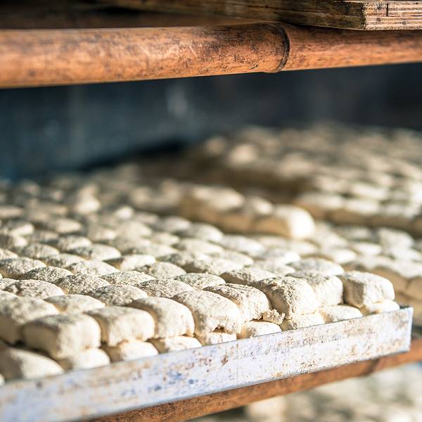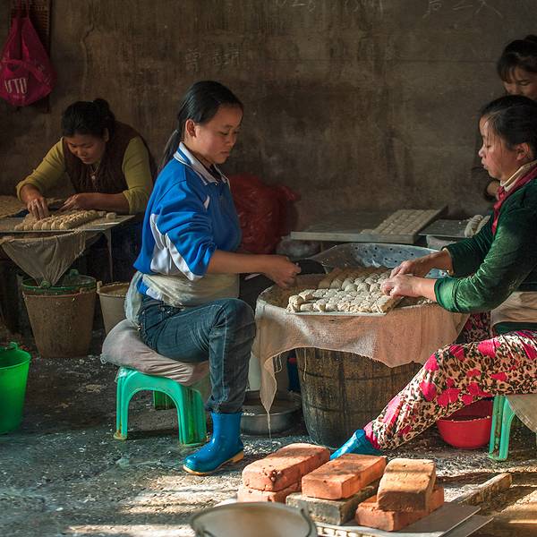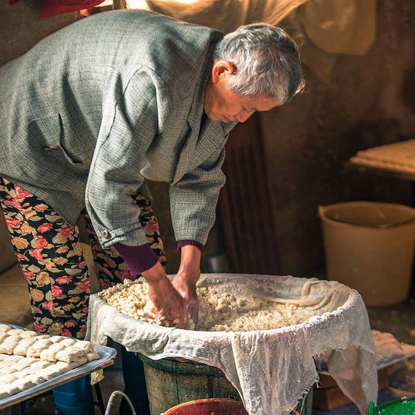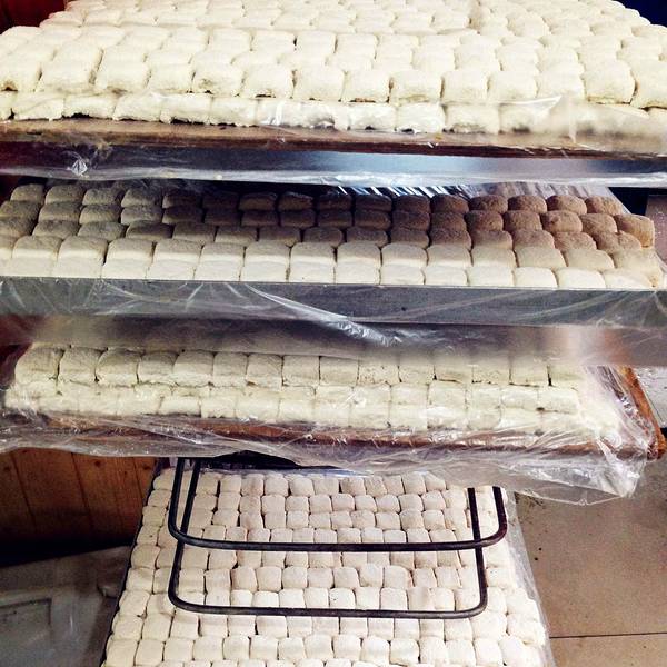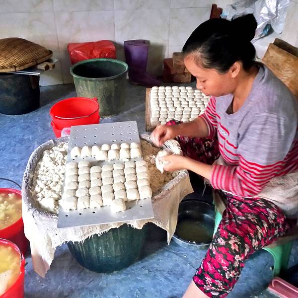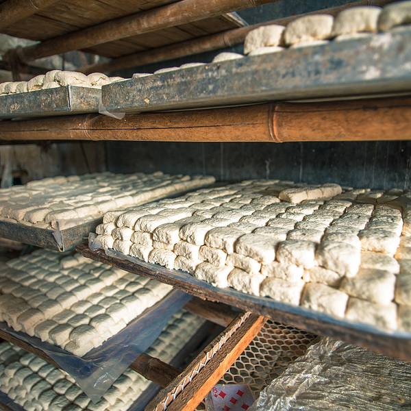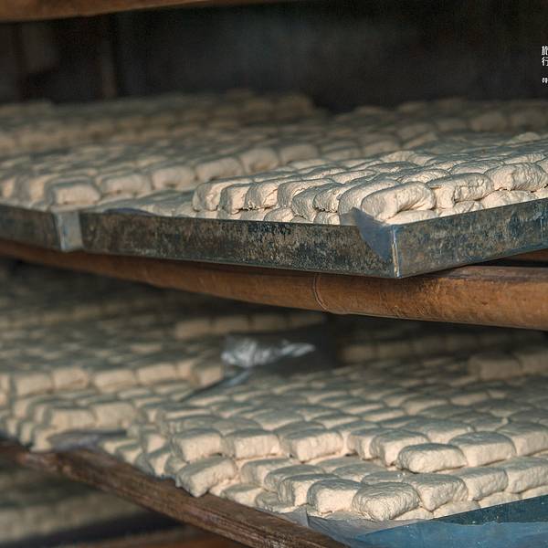 在一旁的板井豆腐坊的制腐房里,阿姨也开始忙碌,手工制作的豆腐,一个个很饱满。 ”今天美食街开业,一会儿要把这些做好的豆腐送去美食街的餐馆。板井豆腐算是建水最正宗、最美味的豆腐啦,你可以去尝尝!”阿姨微笑的对我说道。