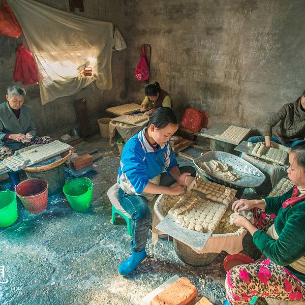在一旁的板井豆腐坊的制腐房里,阿姨也开始忙碌,手工制作的豆腐,一个个很饱满。 ”今天美食街开业,一会儿要把这些做好的豆腐送去美食街的餐馆。板井豆腐算是建水最正宗、最美味的豆腐啦,你可以去尝尝!”阿...
