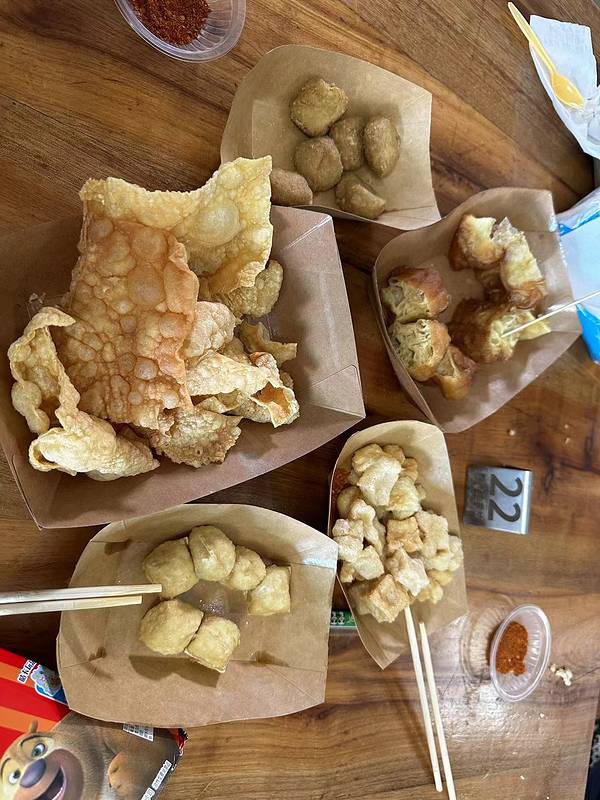 我们在挨着的板井豆腐坊喝了豆浆(超好喝)、吃了豆花(辣的)、还有一种没吃过的炸豆腐、这里是5元...