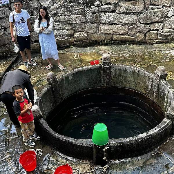 豆浆非常纯正,豆花爽滑细腻👍豆浆豆花5元一位自助,其他豆干、臭豆腐、包浆豆腐等5元一盘板井豆腐坊隔壁就是古井,当地居民都打井水回去喝,当地居民说可以直接饮用井水里放养了一条鱼,下面是知识点:因为周...