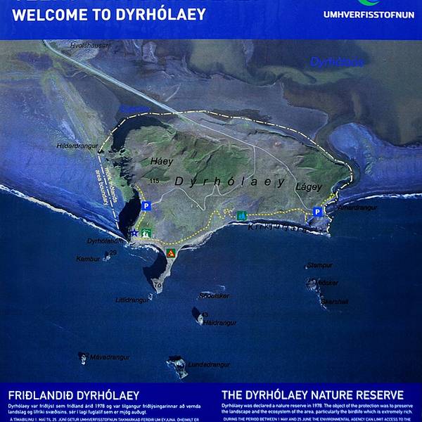 夏季有很多的鸟类在此栖息,包括海鹦鹉帕芬(Puffin),可以观鸟。崖顶上有一个小灯塔。这个120米高的峭壁在几千年前的一场火山喷发中形成,周围环绕着黑沙滩和绿色牧场。