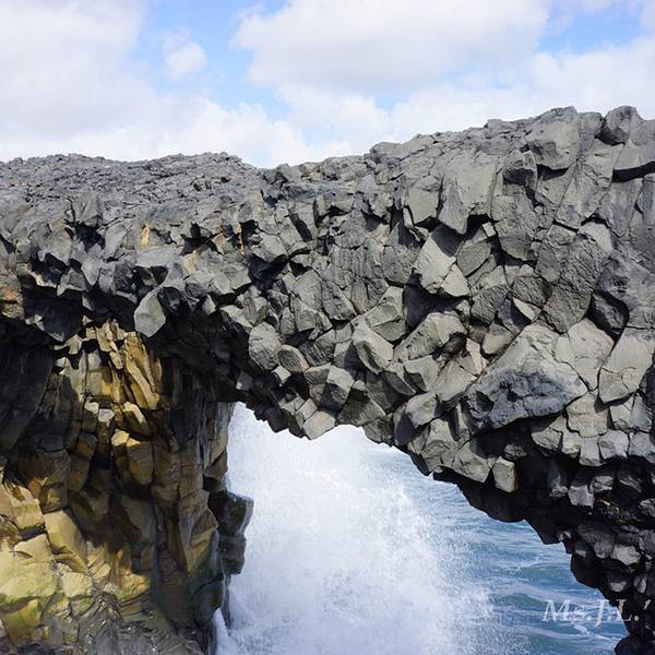Dyrhólaey在冰岛语中指的是“岛屿之门”,它的南侧和西侧均是峭壁,还有一块窄石,窄石中间是一个拱形门。小型飞机和船只可以从这个拱形门穿过,这也是Dyrhólaey得名的原因。