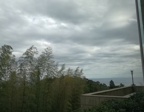 坐滚梯通过长长的隧道一直向上。日式传统剧目“能”剧的表演小剧场。浩瀚的太平洋,对面伊豆诸岛依稀可见9:30AM