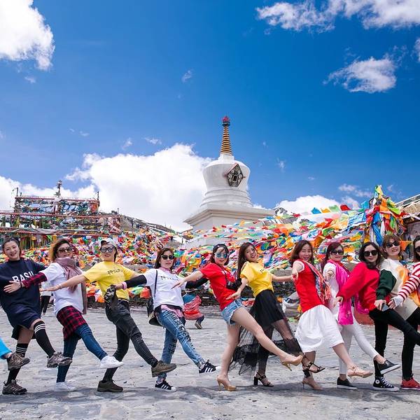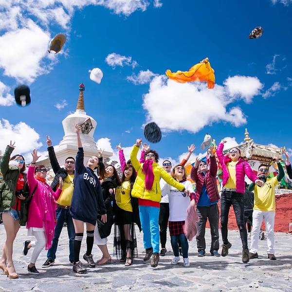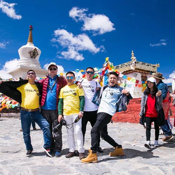 在白塔下,在蓝天下,女士们来了一张大合照。既然女生们都来了,我们男生也毫不客气的露出了我们的队服。此时“指间沙”应该正在高山厕所霸气的释放着。 展开