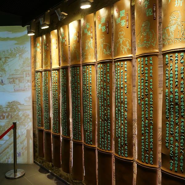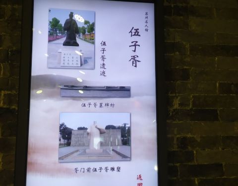 苏州名人馆的大门名人馆一共有两层,一楼的大厅很大,墙壁上有印章、各苏州名人的图文介绍,老苏州和现代苏州的动态图一楼有清代厅厅内做成竹简状的木牌上刻着清代名人的绣像和文字介绍长卷姑苏风情图明代厅明代厅的结构设计比较复古,天花板上是看上去一卷书,一旁是复古的回廊,墙壁上有人物绣像,还有一个古戏台还有一个小展厅是春秋时期吴国的君臣全身铜像,有泰伯、夫差、阖闾、伍子胥等走楼梯上二楼,是民国厅,展示了民国苏州名人的绣像和事迹苏州历代状元宰辅厅厅内都是关于苏州历代状元和宰辅的绣像以及文字介绍最后一进是苏州院士厅建议游玩2小时左右,由于在馆内,一年四季都适合参观