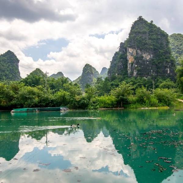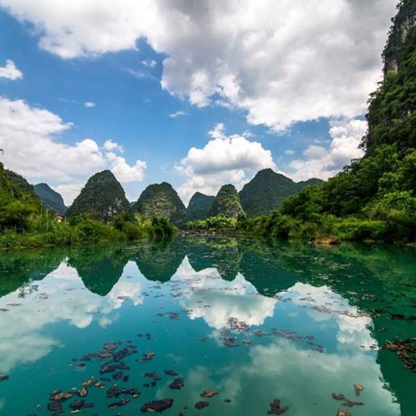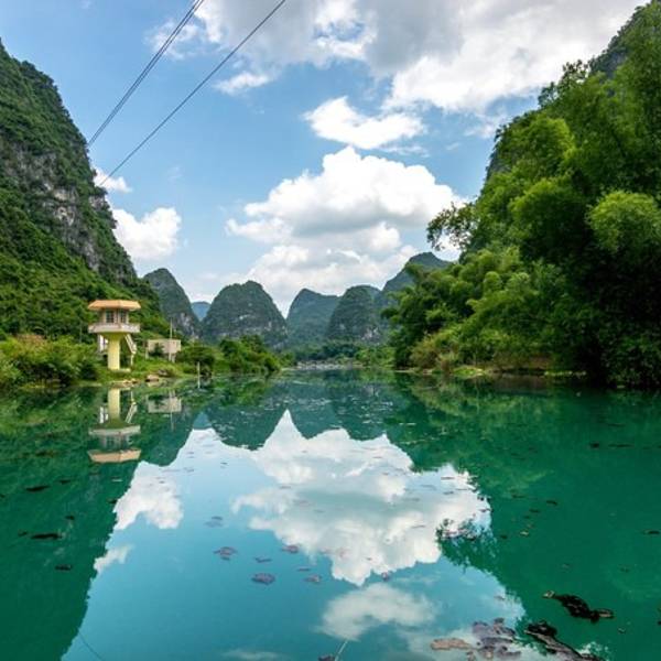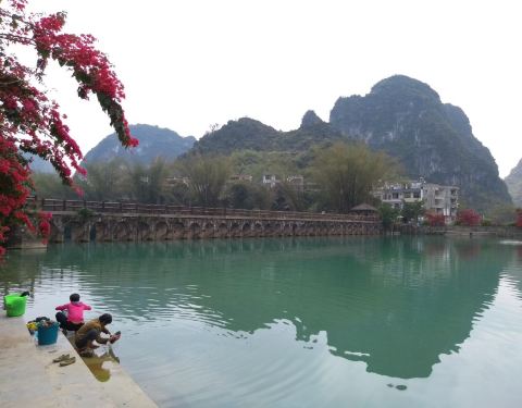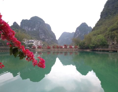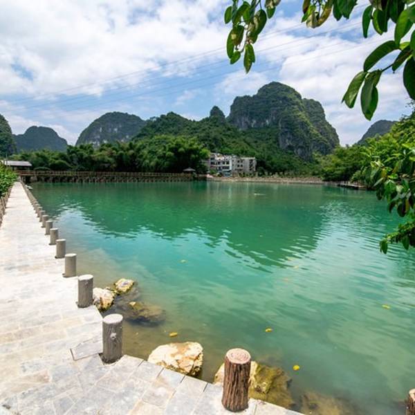 景点很美丽,赏心悦目,就是小一点,周边配套在建中。如果沿河都修建好了,景区就相对大气了。如果再把周边的山开发好,就更好了。