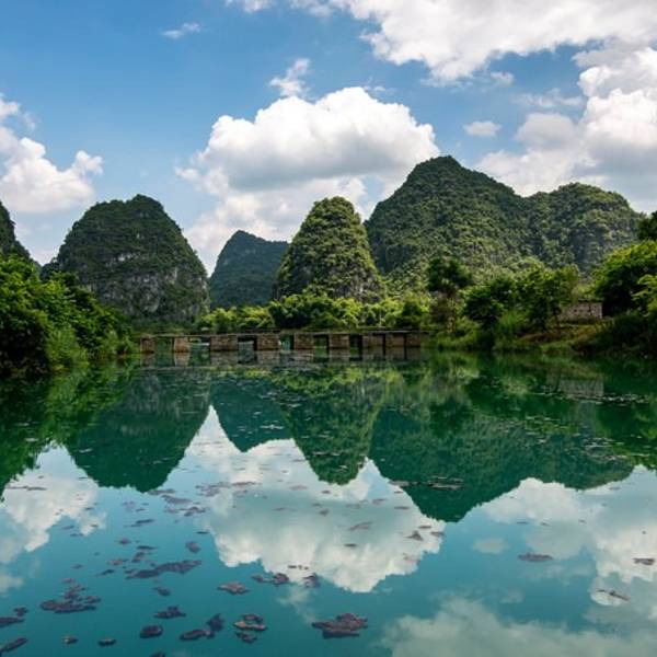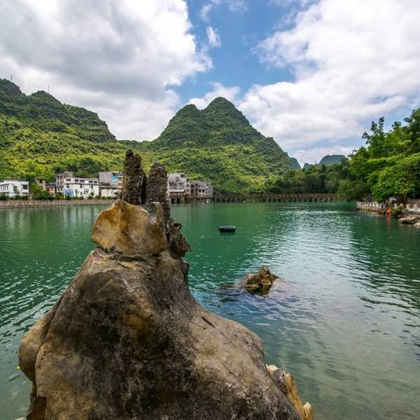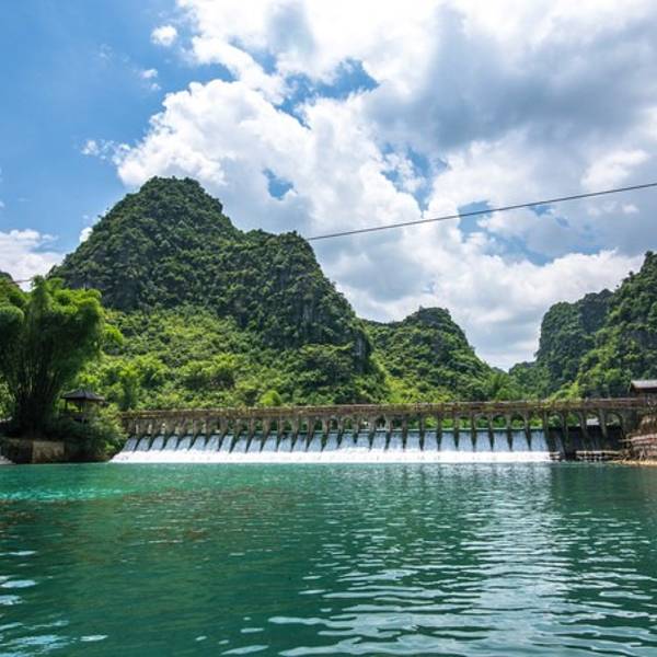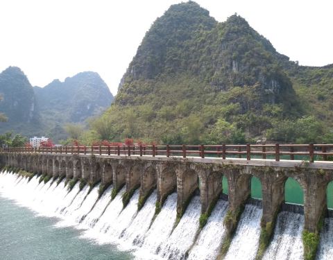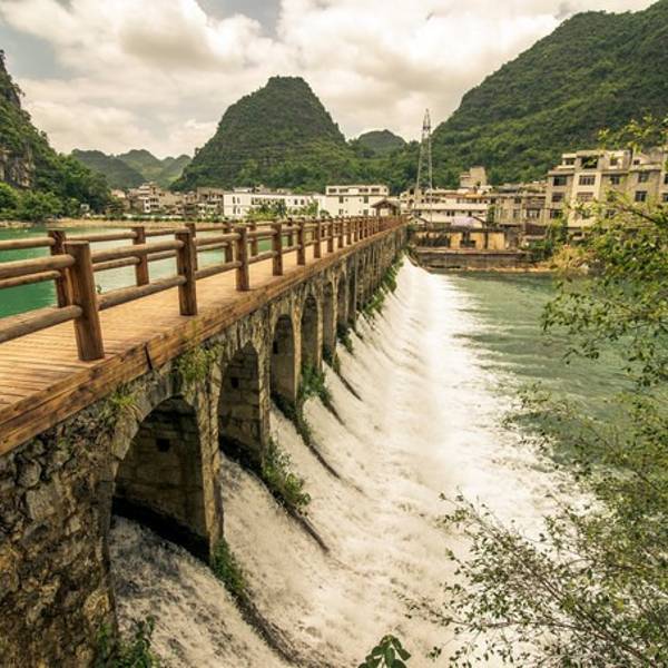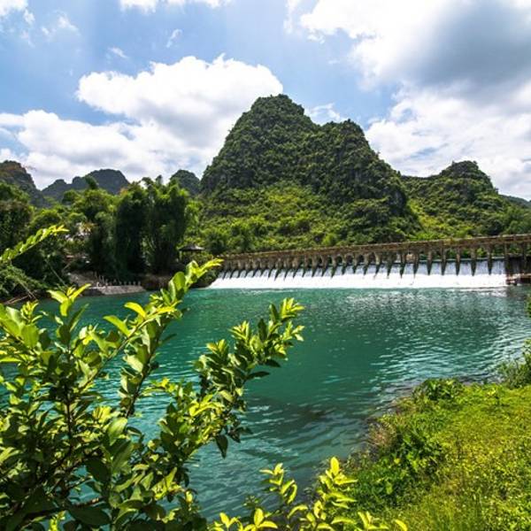 1973年把拦河坝加高架桥梁,并在坝下建成一座250千瓦的水电站。河水水源是从山脚下涌出,终年不竭,绿水常流,山清水秀,风光秀丽,典型的喀什特地形,有“小桂林”之称。 这里河水清冽,乘坐竹筏浏览布泉河,两岸茂林修竹青山伟岸,田园如茵…… 在这里可以骑行、徒步、爬山、天坑探险、露营、垂钓……一个周末度假休闲的好地方! 每年3月春暖花开之时,这里的上千亩荞麦花盛开,一片纯白,站在那里如置身于冰天雪地之中。