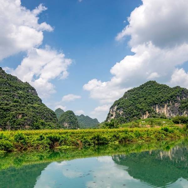 乘坐竹筏浏览布泉河,两岸茂林修竹青山伟岸,田园如茵…… 在这里可以骑行、徒步、爬山、天坑探险、...