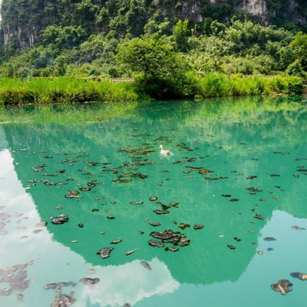 水很蓝,非常幽静,像世外桃园,进去的路不好走,弯路多!不需门票!竹竿要与船工讲价!