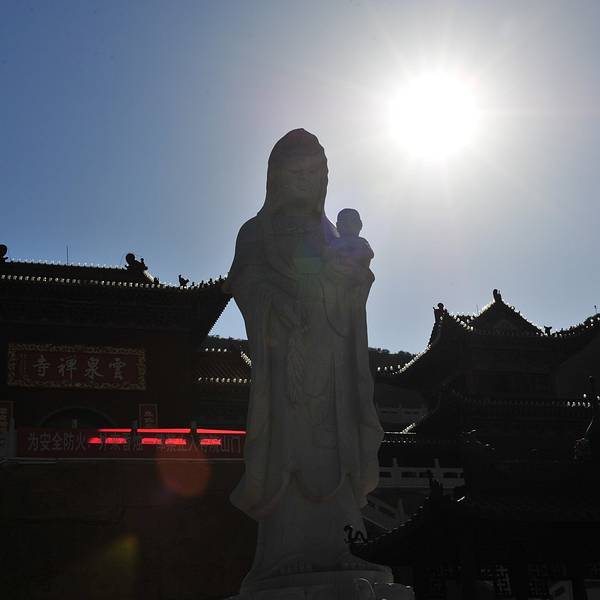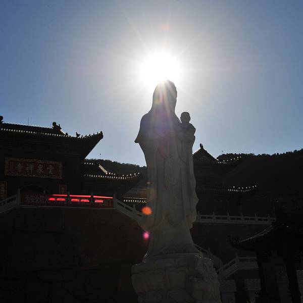远望赐儿山,峭壁如削,万木峥嵘,亭台楼阁,参差错落。若登山而上沿路 铺设台阶路面,陡削路段则安装扶手栏杆,拾级而上即可达云泉寺。蜿蜒山路有三道平台,第一道平台有六角亭一座,有大雄宝殿和南大殿;第二道为望亭;第三道是云泉寺山门,山门也称天王殿。山门之外原 有教稼亭,壁上有民间巧匠画的五谷之神后稷,教人不忘耕稼。稍上是教化堂,壁上画有伏义轩辕,意在告诫后人勤于劳作,时时不忘自己为炎黄子孙。山门前有石狮镇守,旗杆矗立。山门内侧是龙王殿、真武 殿、藏经殿中释迦佛祖合掌闭目,南海观音挥洒拂尘,造型生动,栩栩如生。