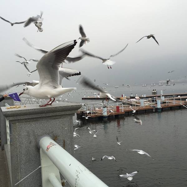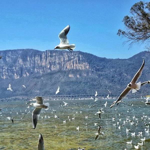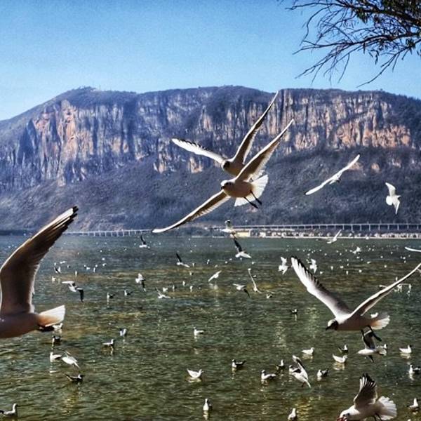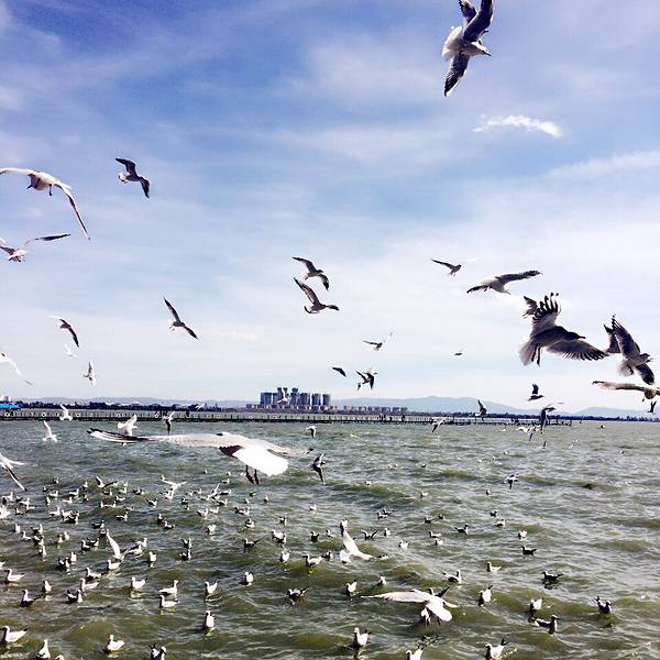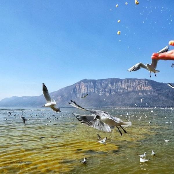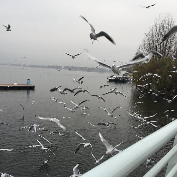 到了昆明心心念念地就是去看一看來这边过冬的西伯利亚海鸥。每年十一月份来自西伯利亚的红嘴鸥便会飞来昆明过冬,在来年的三月再回去。像是在春城过个中国年。