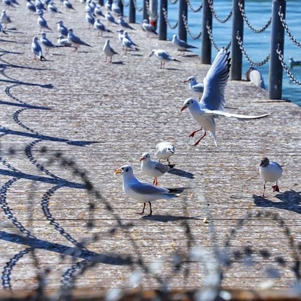 二月中下旬的海鸥已经没那么多了,但是还是有不少。他们吃着游客的面包,时不时一个俯冲,从游客手中掀走面包,紧张又刺激。