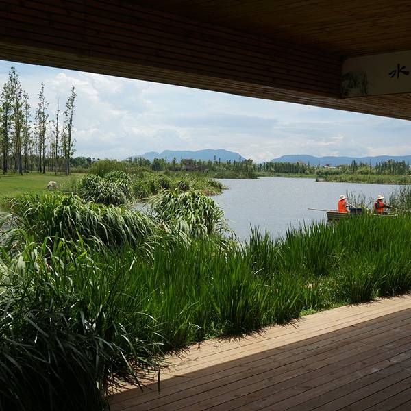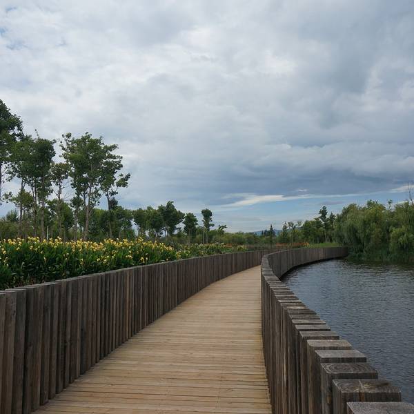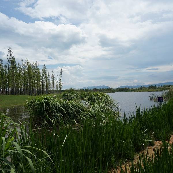 呈贡斗南湿地公园位于昆明市呈贡县环湖东路,是一处安静的湿地公园。湿地范围内主要是柳树,还有部分地被及湿生植物,据了解,将恢复湿地植物1230亩,在保证湿地净化功能的同时,巧用植物搭配营造多样景观,实现“四季飞花”景观特色。“斗南湿地”景观湖泊里的水较清澈,还有一簇簇芦苇露出水面,微风拂过轻轻飘荡。湖面上方一根粗实的电线横过,上有几只红嘴鸥歇脚,不时掠过湖面,或在空中嬉戏。在一处花丛中,有块牌子上写“司法林”。在慢行步道上,木制长凳排布两边,走累了还可稍作休息。