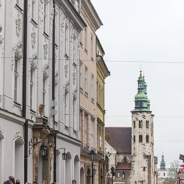 圣安德肋教堂是克拉科夫最古老的建筑和波兰保存最完好的罗曼式建筑之一。从1320年起归属圣Klara会。这座建筑已经修复过多次。目前其内部的装饰、绘画和镀金祭坛均为巴洛克式風格。1639年,八角形塔楼上又增加了巴洛克圆顶。 展开