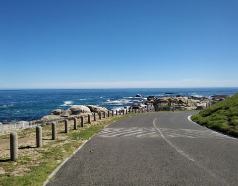 这里是靠近一群山峰的一个海滩,一般也就停留几分钟照照相看看就走,景色还行,有时间应该在海滩玩玩。海水不错,比较干净漂亮,南非没有什么污染,可以静静的享受美好时光。