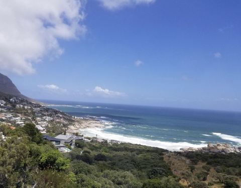 ...湾,来时天气给力,阳光明媚,白色沙滩白色浪花深绿海水,加上背靠山体,构成整个南非房价最贵的地方