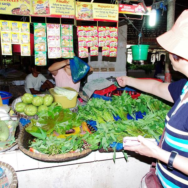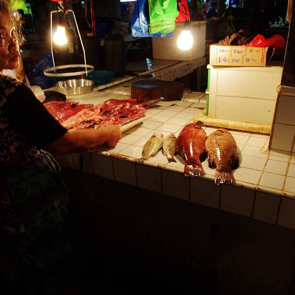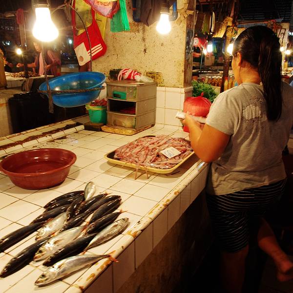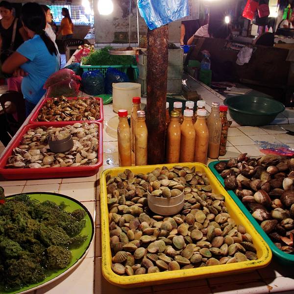 我们是包车的时候特地叫司机在那里停下等我们采购半小时的,其实很多人第一天到达也会经过,强烈建议带海鲜上岛。进了菜场后很多摊主都对我们很好奇,看到我们买菜也很热情,绿叶菜不管种类,统一价50P一把,东南亚最好吃的就是空心菜了,我知道菲律宾人管它叫“kong”就直接问了,她们见我知道菜名乐得不行。海鲜区有超大石斑鱼、章鱼、苏梅……反正根据打渔的收获就这么卖了,石斑鱼不细分品种,不像我们东星斑、老鼠斑……都有不一样的价钱,他们都卖一个价,按公斤计费,就看你自己识货不识货了。贝壳类也是论公斤计费,好多没见过的,我们半公斤半公斤买了一些,都很好吃。住处有厨房的同学多买点没错啦!毕竟新鲜便宜,水煮贝类,清蒸鱼类,赞得不得了。一直去海边玩,总觉得东南亚有那么好的海鲜资源,可他们总爱烧烤或各种酱料,把海鲜的味道都破坏了,强烈推荐去海边找家有厨房的民宿或公寓套房,自己采购食材,自己做菜。