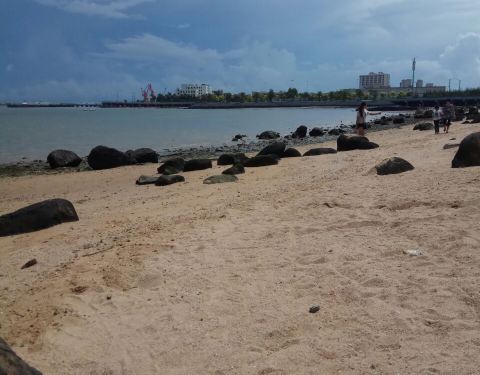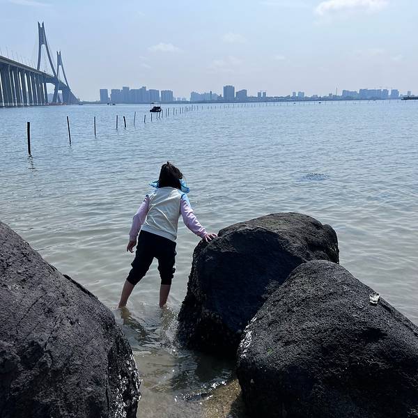 在这个小小的公园里面,沙滩上面有很多小孩子在这里玩上。从友谊花园一直走到尽头就可以看到跨海大桥了从友谊花园一直走到尽头就可以看到跨海大桥了。 在这个小小的公园里面,沙滩上面有很多小孩子在这里玩上。 还是挺有市民感觉的地方。