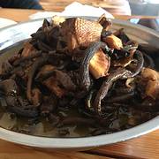 - 东北特色菜,小鸡炖蘑菇。大兴安岭地区的菇类真的好吃。路上又是一番美景