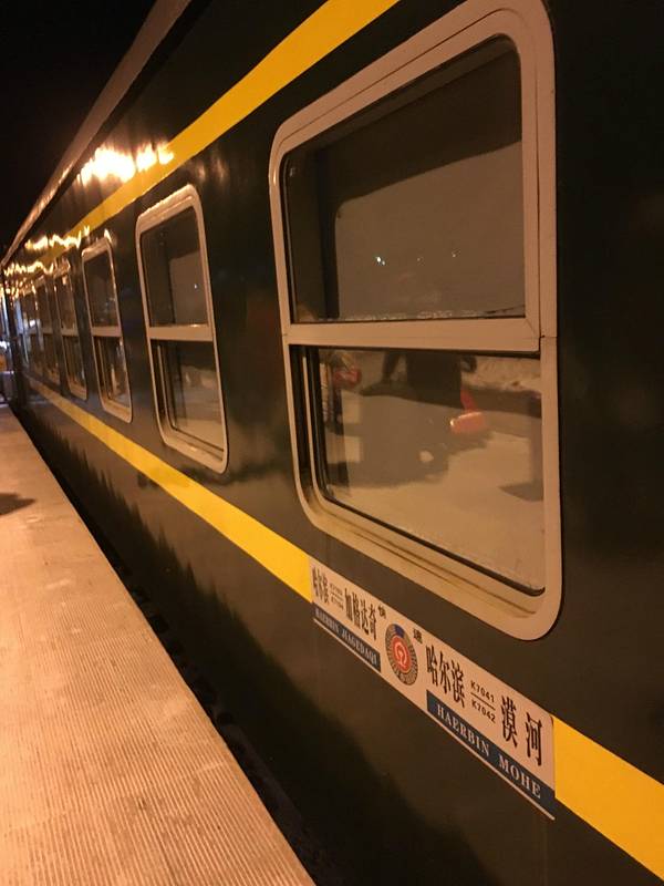 一宿睡得还算不错,只是后半夜感觉有点冷,在差不多到达的一个钟前,我们开始整理行程,穿衣,没感受过漠河的冷是有多冷,只能根据在哈尔滨穿衣情况把行李箱中所有的厚衣服都穿上,过程中,出现过几次,行李箱都...一宿睡得还算不错,只是后半夜感觉有点冷,在差不多到达的一个钟前,我们开始整理行程,穿衣,没感受过漠河的冷是有多冷,只能根据在哈尔滨穿衣情况把行李箱中所有的厚衣服都穿上,过程中,出现过几次,行李箱都关好了,看到别人穿的更多,然后又拉出行李箱,又多加了一件,然后裹的手脚行动都像是拖着了(两双厚袜子+暖宝宝贴,两条保暖裤加一条冲锋裤,打底T袖+一件保暖衣+抓绒衣+马夹+冲锋衣,有内胆),不过到达时,证明,穿这么多是对的,穿好衣服后,可火车还没到,热的像傻逼样,哈哈…