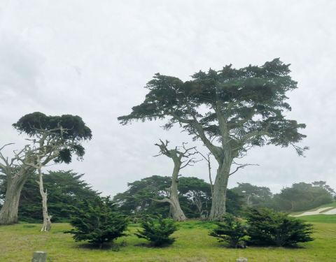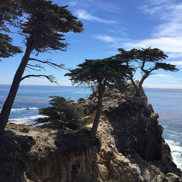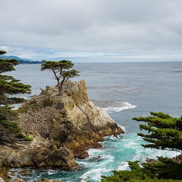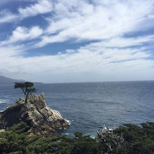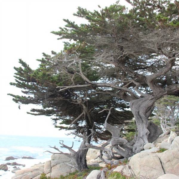 孤零零地长在海岸边上,扎根石缝,面向大海,据说这株柏树已经有250年以上的树龄了。从孤柏现在还那么挺拔俊秀的样子来看,早奶奶的形象或许是更加飘逸灵动、坚韧...终于到重头戏了---“孤柏(The Lone Cypress)”