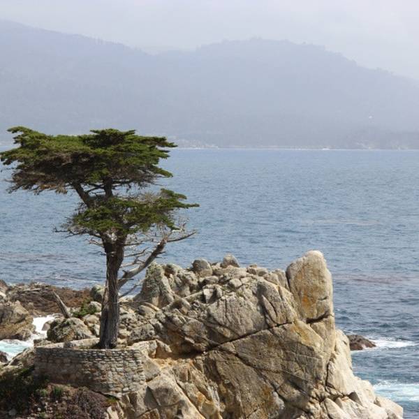 公路边观看孤柏最佳的地方设立了一些停车位,似乎每个路过的车在这里都会停车这棵孤柏是加州17哩风景线中的一个景点,据说这棵柏树已经有200多年了,因为它的孤独,所以也成为了珍贵。公路边观看孤柏最佳的地方设立了一些停车位,似乎每个路过的车在这里都会停车。