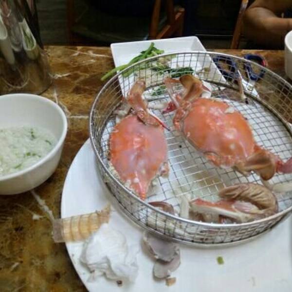 这新鲜到不做炒海鲜只做清蒸!螃蟹都是甜的!真的👍打算来的小伙伴真的要来尝尝共计699💰蒸海鲜下面直接放米做海鲜粥连水都不放!母海蟹满黄!良心啊
