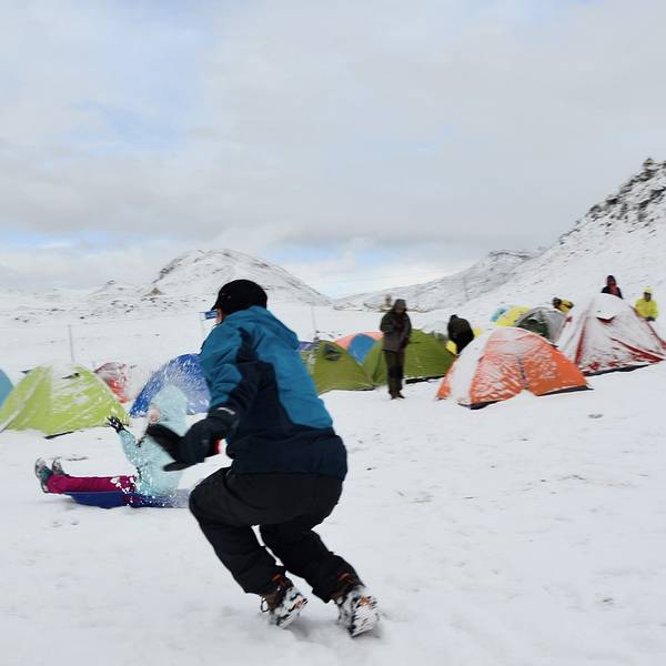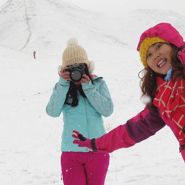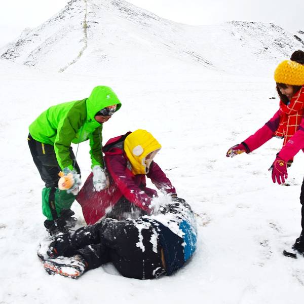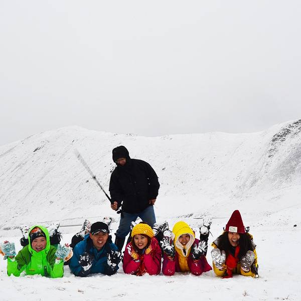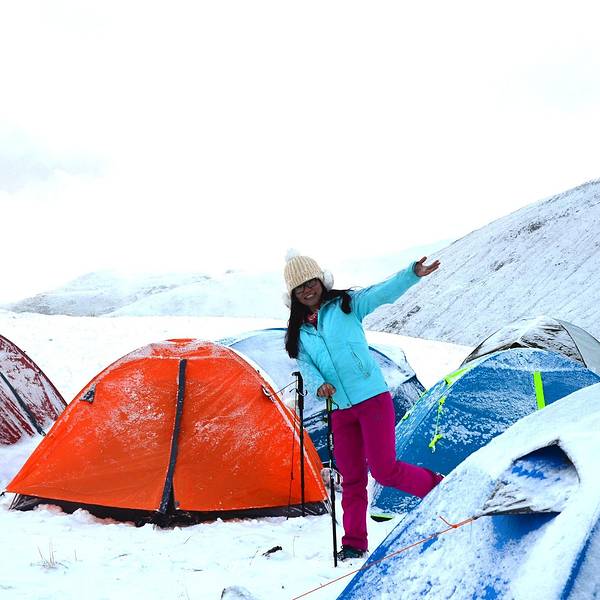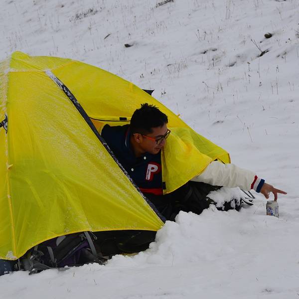 雀跃不已的我们赶紧加快搭建帐篷的步伐,好想马上去雪地里打个滚儿。调皮好玩的农民哥被一群姑娘围攻户外,用最本能的行走去感受当下。