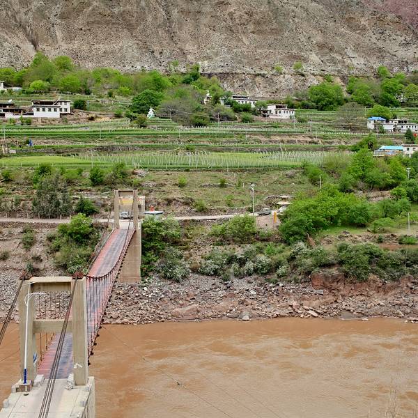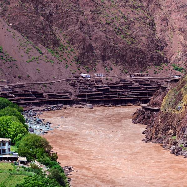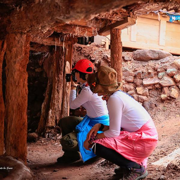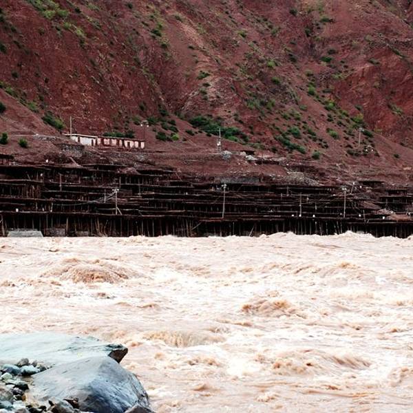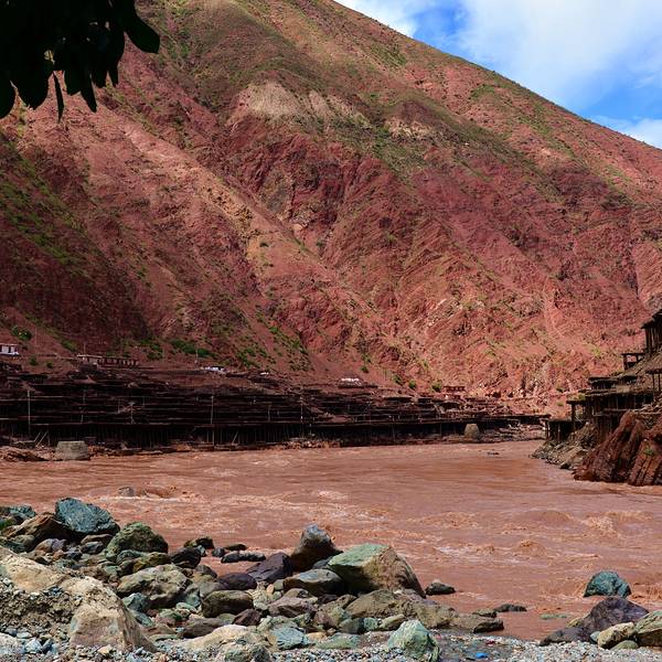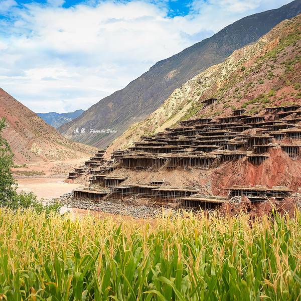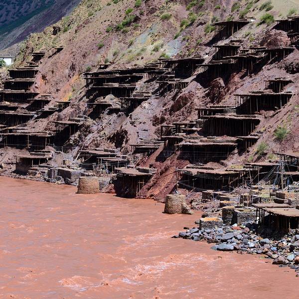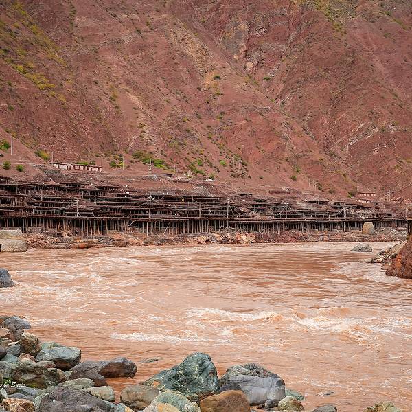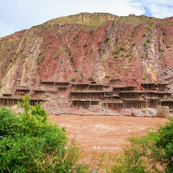 停车场出来,我们请了一个当地的姑娘做导游,顺着村庄的小路步行进入。所谓的盐田,其实是在汹涌澎湃的澜沧江边搭建的一些土木结构的平台。