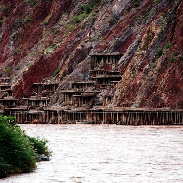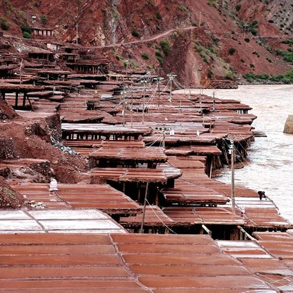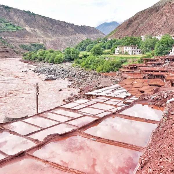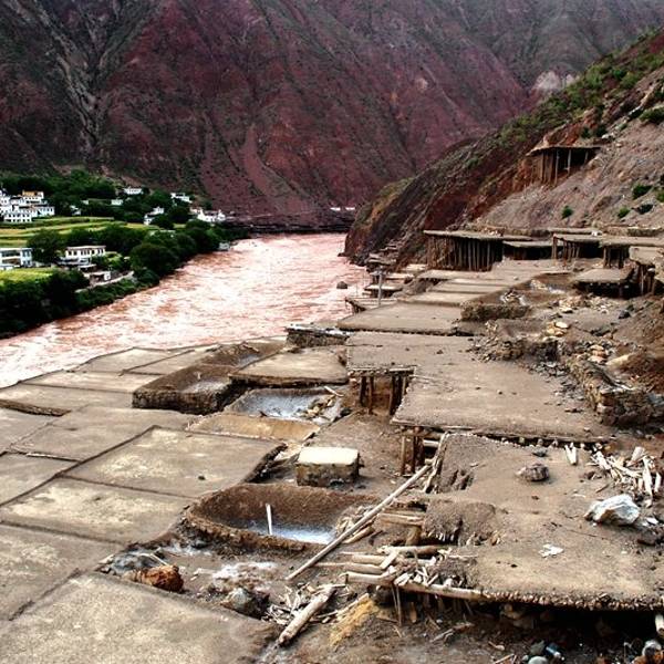 使这里出现了家家户户屋顶铺了一层白雪似的晒盐奇观。澜沧江两岸,西岸地势低缓,盐田较宽,所产的盐为淡红色,