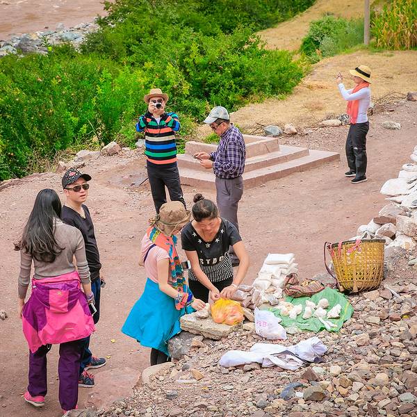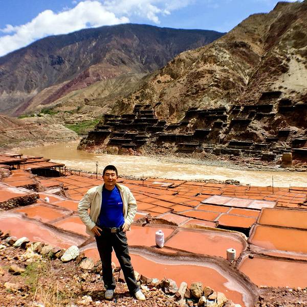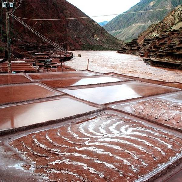 白盐多在江东高地筑田晒得,量少,略贵。我们这次来的是加达千年红盐田景区,
