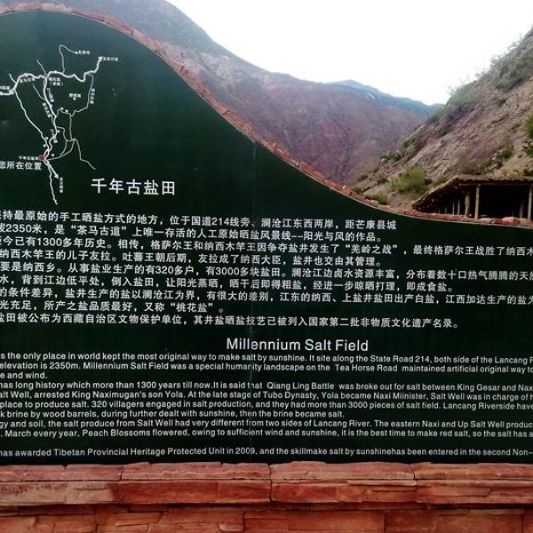 芒康盐井古盐田已有1300年历史,是我国唯一保持完整最原始手工晒盐方式的地方。在过去是“茶马古道”的重要驿站,现在则是国道 214 线的必经之路。
