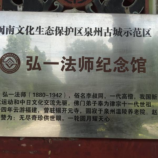 弘一法师纪念馆 如果单说弘一法师,大概很多人都不会那么清楚,但是 说到他的俗世名字:李叔同 ...长亭外,古道边, 芳草碧连天。 晚风拂柳笛声残, 夕阳山外山。 天之涯,地之角, 知交半零落; 一觚浊酒尽余欢, 今宵别梦寒。 弘一法师纪念馆 如果单说弘一法师,大概很多人都不会那么清楚,但是 说到他的俗世...长亭外,古道边, 芳草碧连天。 晚风拂柳笛声残, 夕阳山外山。 天之涯,地之角, 知交半零落; 一觚浊酒尽余欢, 今宵别梦寒。 弘一法师纪念馆 如果单说弘一法师,大概很多人都不会那么清楚,但是 说到他的俗世名字:李叔同 相信大家都知道了,这曾经是一个风流才子 关于李叔同,能想到的名称太多了 音乐家,美术教育家,书法家,戏剧活动家还是中国话剧的开拓者 但是他在人生的后半生,遁入了空门 这是怎么样的心境才能做到的 坐标-泉州市开元寺内尊胜院 环境-我只想说这里很适合修仙 绿色植物很多,很安静,如果我关上小门,就是自己的一片天地 任云卷云舒,我只是坐在窗前 静静的看着,就好 展开