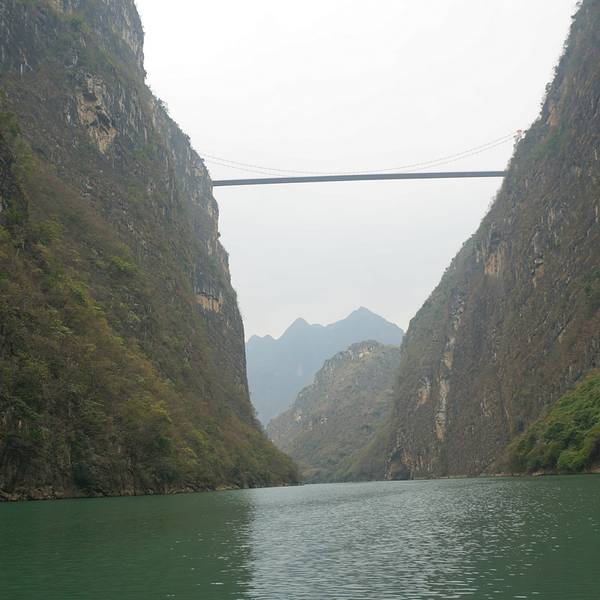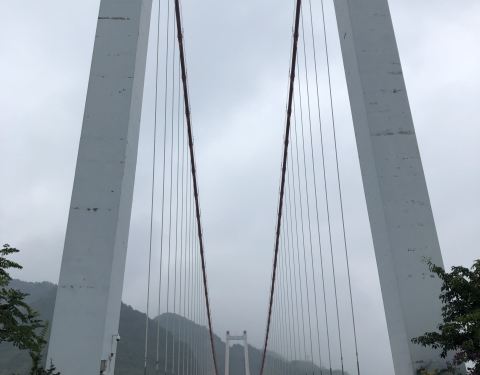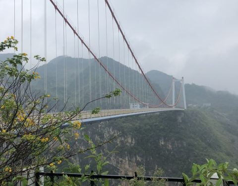 大桥距离水面300多米。作为有点恐高的人来说,在上面都有点发晕,老爸不敢走,我和老妈走过了整座桥。