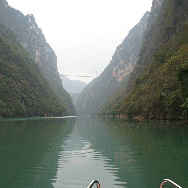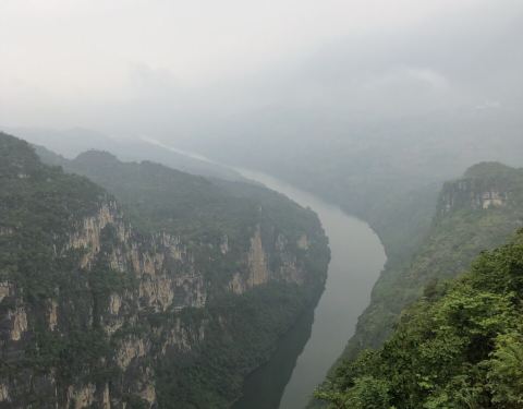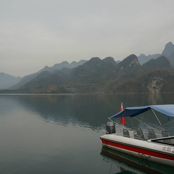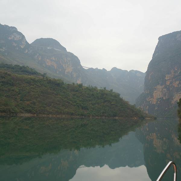 特别是在雾气朦胧、烟云缭绕的时候,给人更是一种仙境般的感觉。几乎全是回头弯从者相镇到北盘江大峡谷的路很不错,大部分是带回头弯的山路,比较刺激,我起的早,路上没有遇到一辆车。几乎全是回头弯峡谷需要坐船游览,怎奈就我一个人,大船不开,我索性先去游客接待中心上山的布依族寨子里...从者相镇到北盘江大峡谷的路很不错,大部分是带回头弯的山路,比较刺激,我起的早,路上没有遇到一辆车。几乎全是回头弯峡谷需要坐船游览,怎奈就我一个人,大船不开,我索性先去游客接待中心上山的布依族寨子里溜达溜达。一个半小时过去了,景区还是没有游客,这么远跑来总不能不坐船看看大峡谷的真容吧,快艇出船要900,太贵了,磨了半天,最后400成交,我不会游泳,小快艇坐着害怕,他们就安排了两名船员。北盘江流经贞丰县的7个乡镇,在境内形成了一条94千米长的大峡谷,为贵州的峡谷之最。这条峡谷集峰林、溶洞、怪石、瀑布、伏流、花滩、旋塘和原始森林植被于一体,既有长江三峡的秀丽险峻,也有美国科罗拉多大峡谷的雄奇壮美。在这一段峡谷中,还萦绕着远古壁画、古城遗址等夜郎文化之迷,以及铁索桥、摩崖石刻、古驿道等人文景观。可以说,北盘江大峡谷是贵州西部旅游线上的一个新的亮点。也是"迂回曲折的画廊"和"两岸猿声啼不住,轻舟已过万重山"的再现。特别是关兴高等级公路上的北盘江特大桥,桥长388米,大桥高486米, 是亚洲同类桥中的第一高桥。给人再现一种"一桥飞架南北,天堑变通途"的感觉,从大桥上俯瞰深隧幽长的大峡谷,给人一种"天沟地缝"的感觉。近千米高、几千米长的斧削绝壁犹如波澜壮阔、气势磅礴的巨幅长廊壁画。特别是在雾气朦胧、烟云缭绕的时候,给人更是一种仙境般的感觉。快艇来回一个小时,离开这里去往下一个景点的时候,路过董箐水电站,原来,这里的峡谷水这么静,是大坝拦蓄水的结果啊。 展开