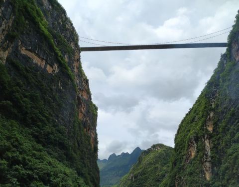 真正让人心慌的,除了高度,更为重要的是,每当有大货车经过时,你都能感觉到整座桥在晃路过北盘江大桥。