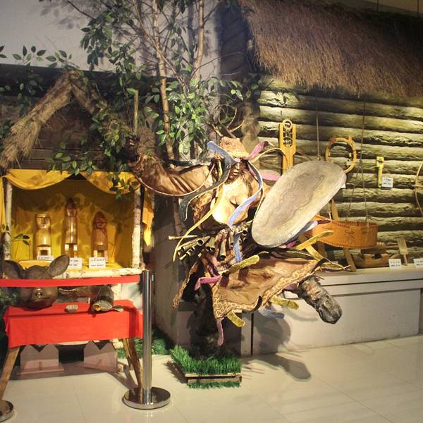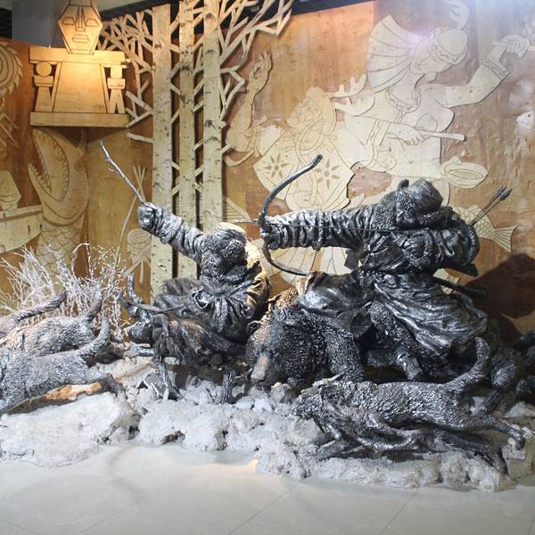 小南山下的饶河博物馆主要陈列饶河古代文物、抗联七军史、赫哲族等少数民族民俗文化。 个人觉得这个博物馆还是挺值得来看的。不过这个博物馆有午休的门厅浮雕。乌苏里旋纹所围成的圆环代表古代先民对太阳神的崇拜...