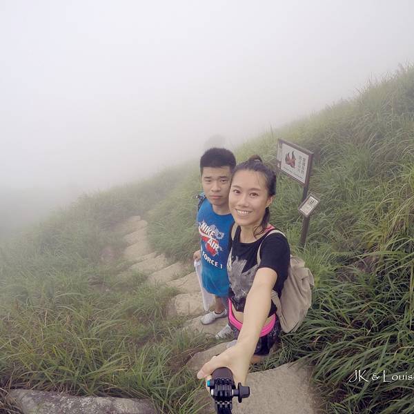 我们爬山的那天风大雾大的,别说落日了,就连路都看不清楚,爬到山顶的时候能见度大约只有10米,周围一片白雾茫茫,只听到自己的呼吸声和风声,气氛神秘得我都有点害怕了。我们就一直在这种能见度的石路上行走,爬到山顶的时候雾气大得可以用伸手不见五指来形容了。这么大的雾估计是无缘看到日落了,而且山顶人烟稀少,风大雾大的,因此我们果断决定提前下山。看看这雾!按照电影里的情节来说,接下来应该会出现一座天空之城或是飞出一只妖孽,然而什么都没有...我就奇了怪了!风这么大雾居然还这么厚,这种无视自然规律的现象真的好有个性哦!山上除了雾大之外,还有大风!随意感受一下这风,这跟刮台风有什么区别!?好在机智如我带了件风衣,才勉强或者下山...